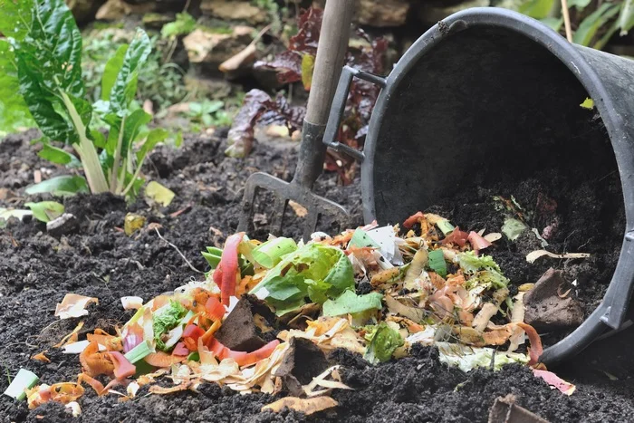 - Letakkan bahan organik di wadah atau lubang kompos.