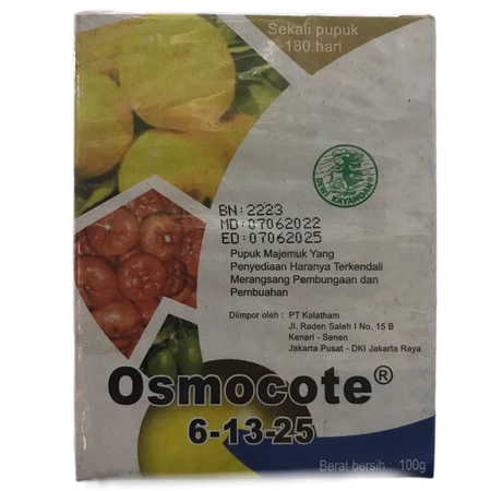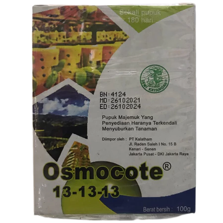- Osmocote 13-13-13: pupuk majemuk yang dirancang untuk memberikan nutrisi seimbang kepada berbagai jenis tanaman. Dengan kandungan NPK yang setara, yaitu Nitrogen (N) 13%, Fosfor (P2O5) 13%, dan Kalium (K2O) 13%, pupuk ini sangat ideal untuk mendukung pertumbuhan tanaman secara optimal, baik untuk tanaman hias, sayuran, maupun buah-buahan.